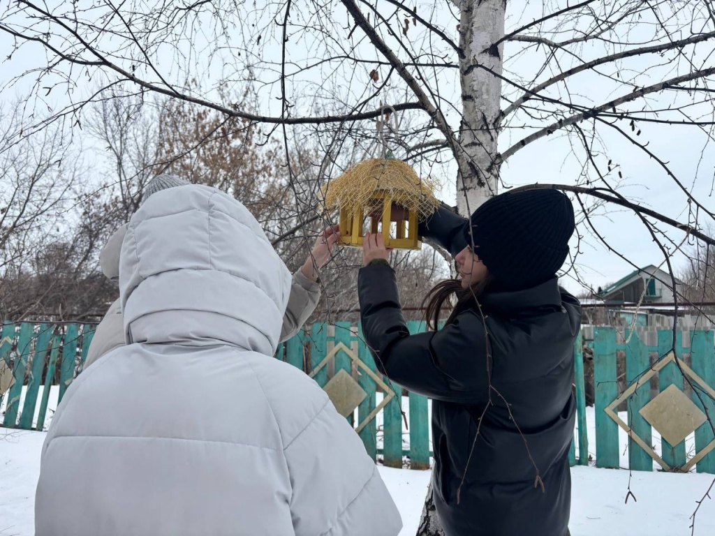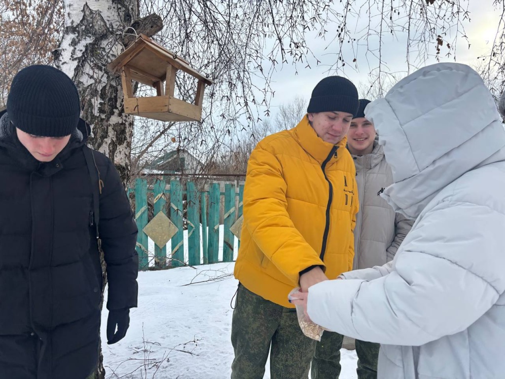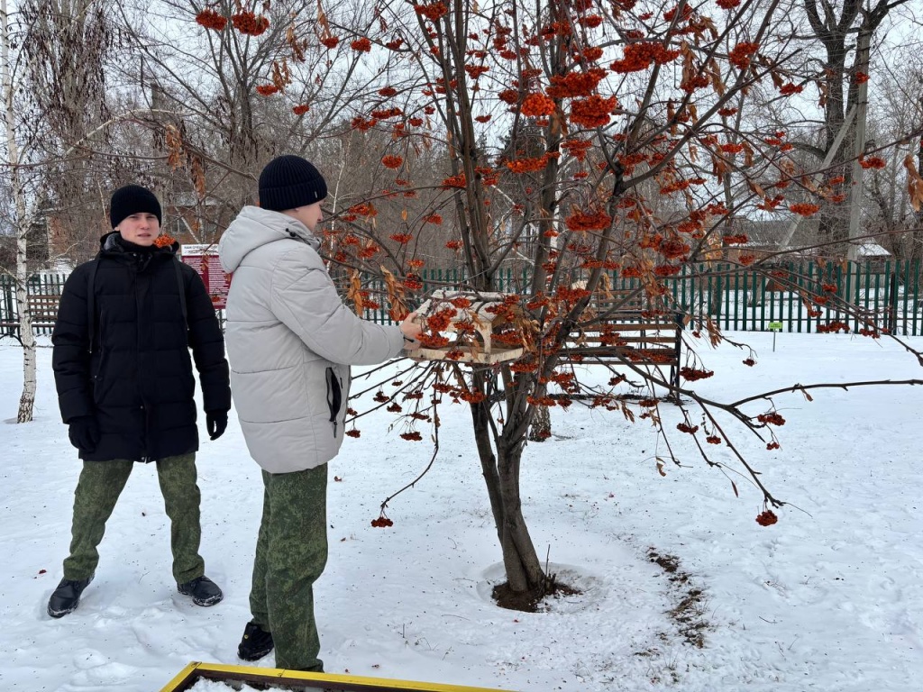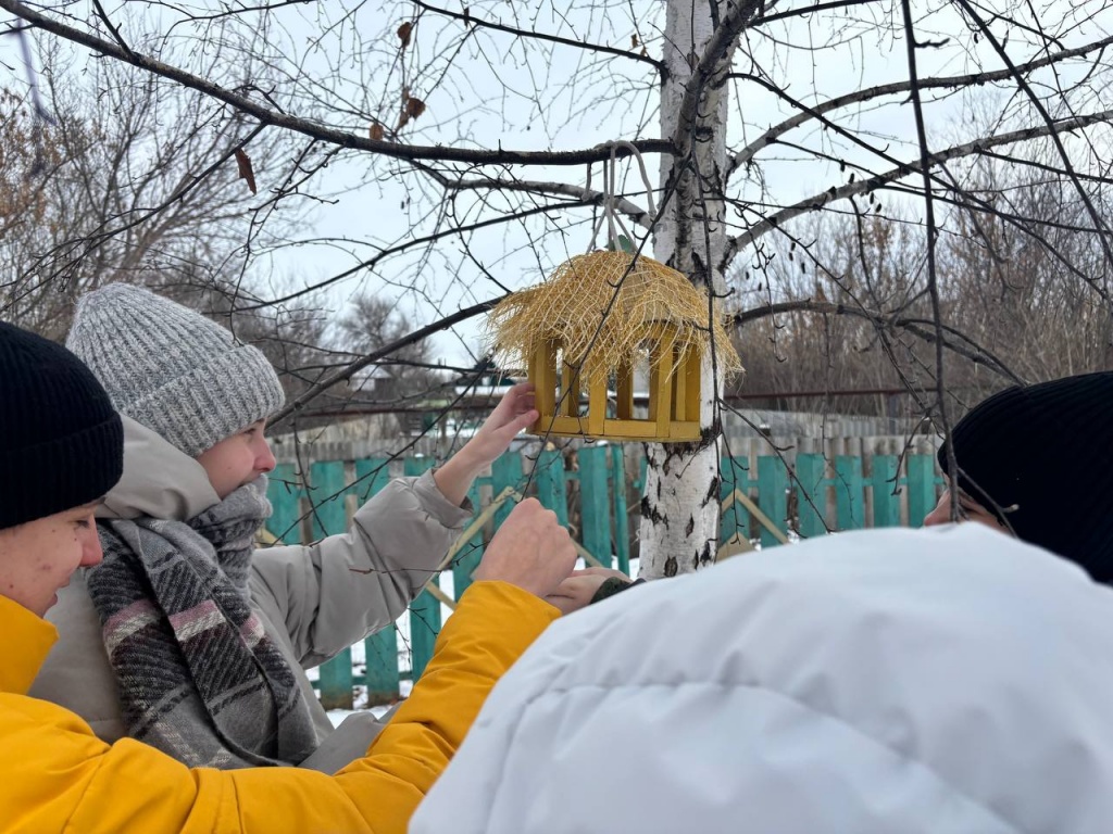 Обучающиеся 9а класса проявили заботу о пернатых друзьях, поправив и наполнив кормушки для птиц семечками и зерном.