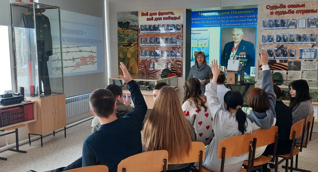 Сегодня обучающиеся 9 «В» класса МОУ «СОШ им.Г.И.Марчука р.п.Духовницкое» посетили музейный урок «Холокост: память и предупреждение», посвященный Международному дню памяти жертв Холокоста, который отмечается 27 января.