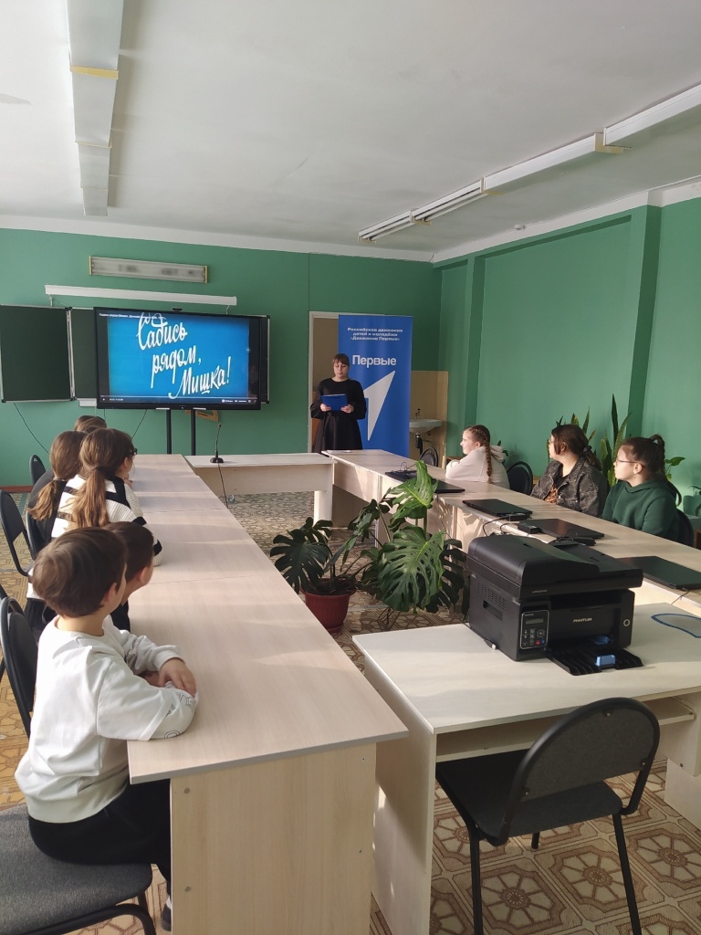 Сегодня с ребятами 5 и 6 класса прошла встреча с сельским библиотекарем Красновой Л.А., которая рассказала об исторических событиях и судьбах людей того времени. После беседы ученики просмотрели художественный фильм «Садись рядом, Мишка!».