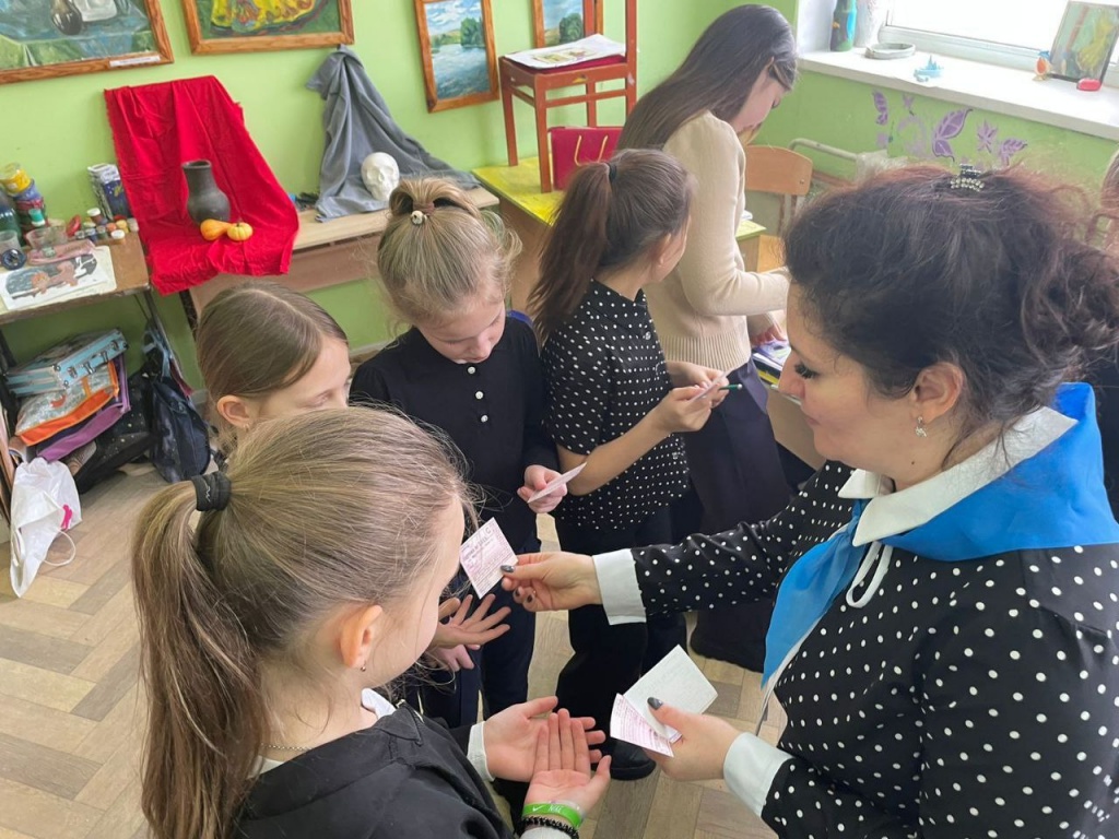 Волонтеры РДК "Луч тепла" присоединились к патриотической акции «Блокадный хлеб». В рамках этой акции они раздали символический кусочек хлеба и карточки с информацией о различных фактах того времени обучающимся Детской школы искусств.