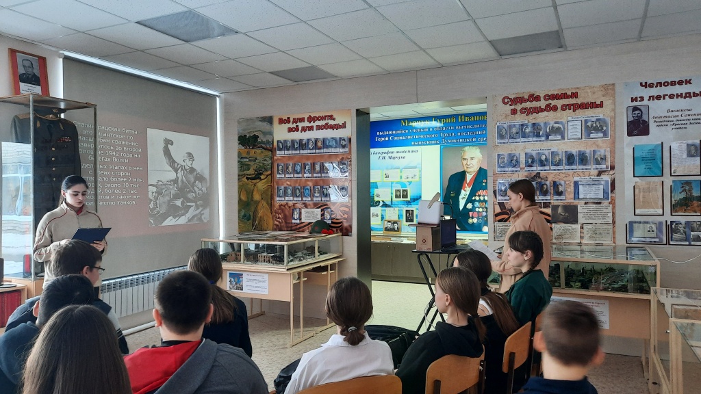 31 января в музее МОУ «СОШ им.Г.И.Марчука р.п.Духовницкое» для обучающихся 6 «Б» класса состоялась тематическая экскурсия «Они защищали Сталинград», посвященная 82-ой годовщине со дня победы наших войск в Сталинградской битве в годы Великой Отечественной войны.