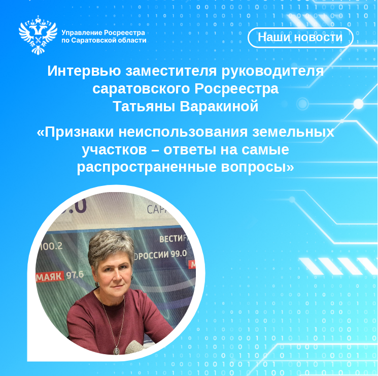 Интервью заместителя руководителя Управления Росреестра по Саратовской области Т.А. Варакиной «Признаки неиспользования земельных участков – ответы на самые распространенные вопросы»
