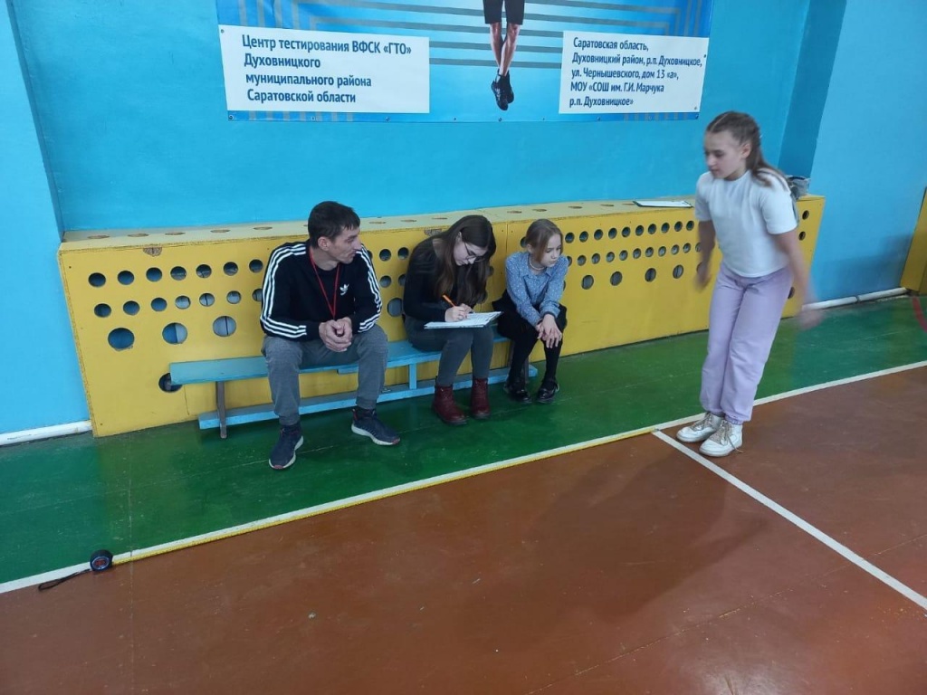 Сегодня, 3 марта в спортивном зале учащиеся 5-х классов МОУ "СОШ им. Г. И. Марчука р.п Духовницкое Духовницкого района Саратовской области" сдали нормы Всероссийского физкультурно-спортивного комплекса "Готов к труду и обороне", преподаватели и директор школы Фролова Т. А. также приняли участие в сдаче нормативов.