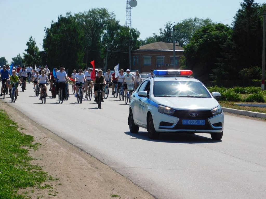 Сегодня, в р.п.Духовницкое состоялся велопробег в честь празднования Дня России.