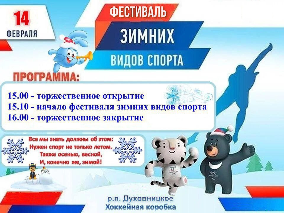 14 февраля в 15.00 на территории хоккейной коробки состоится Фестиваль зимних видов спорта.