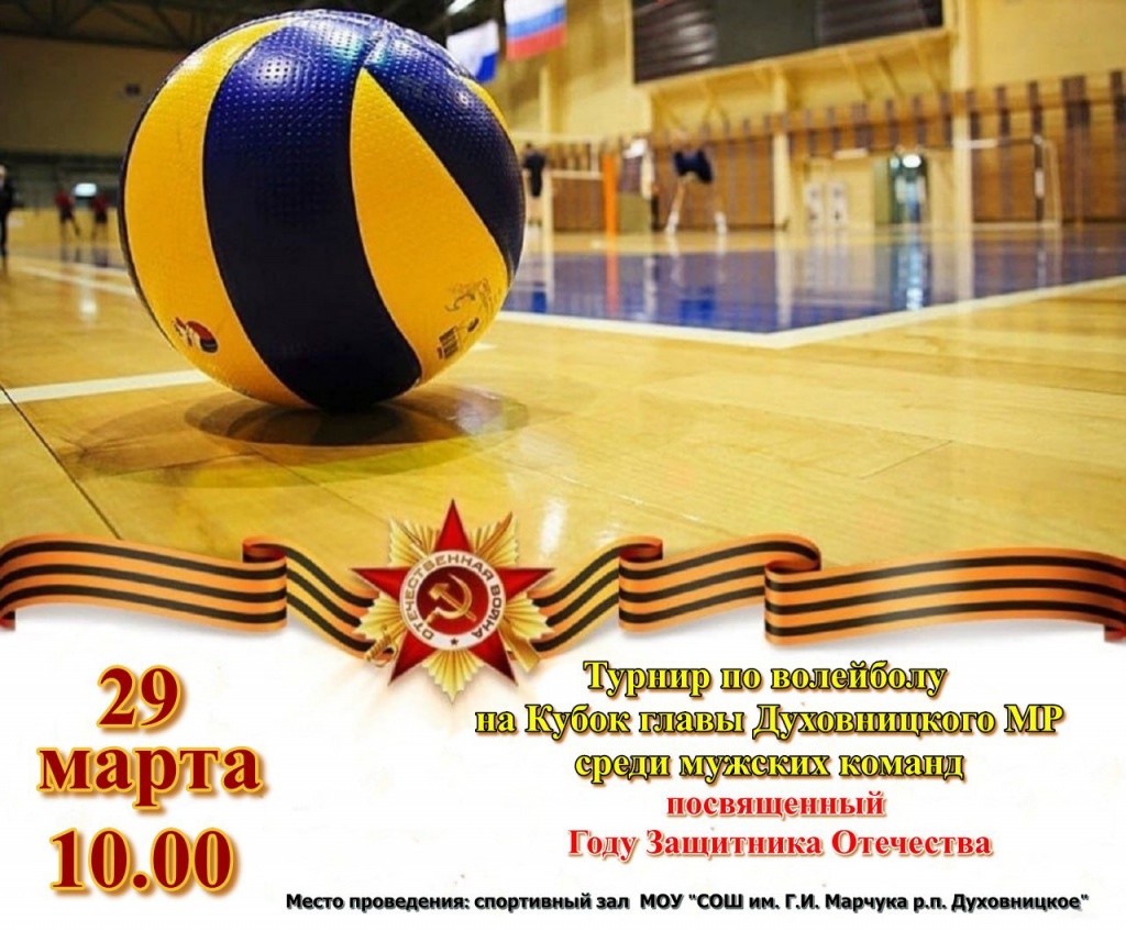 Приглашаем зрителей и болельщиков на турнир по волейболу среди мужских команд на Кубок Главы Духовницкого муниципального района, посвященный Году Защитника Отечества.