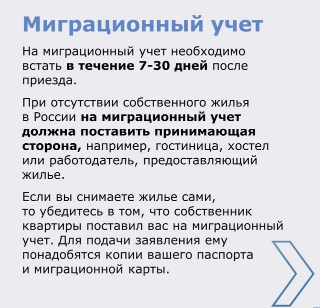 Памятка. Постановка на миграционный учет.