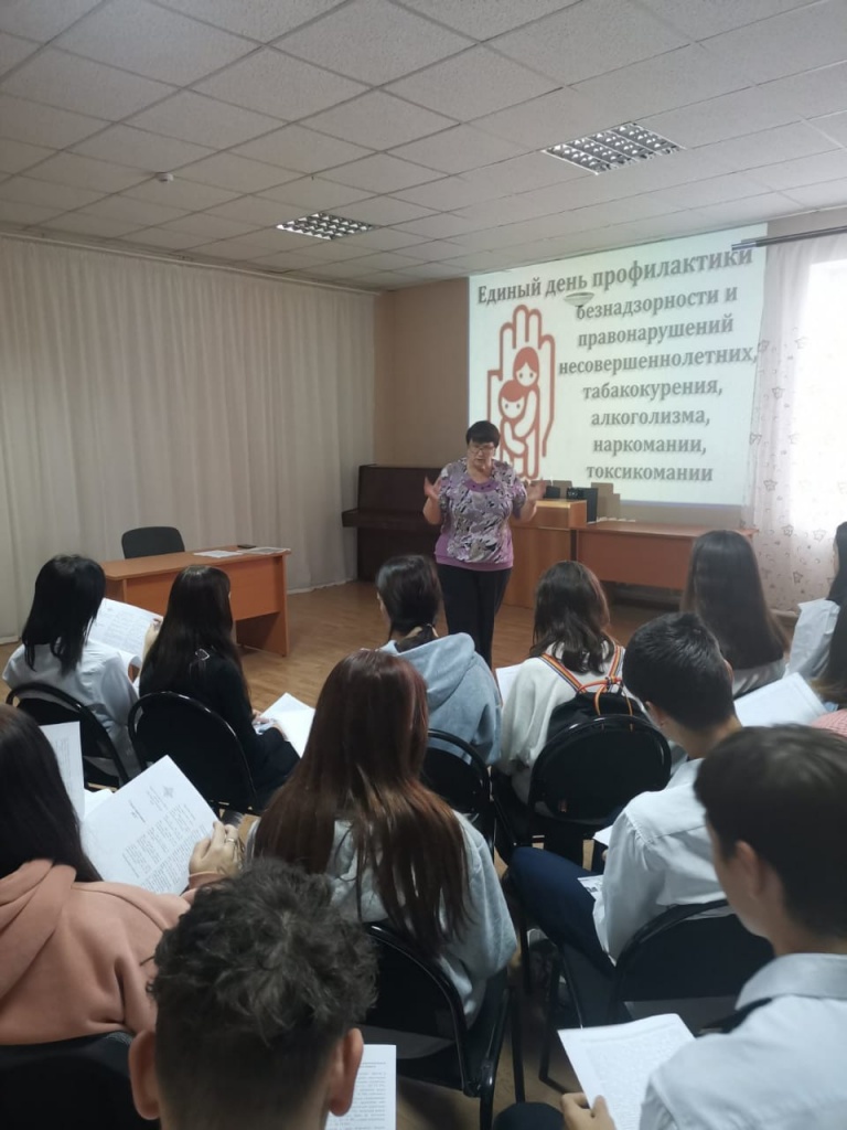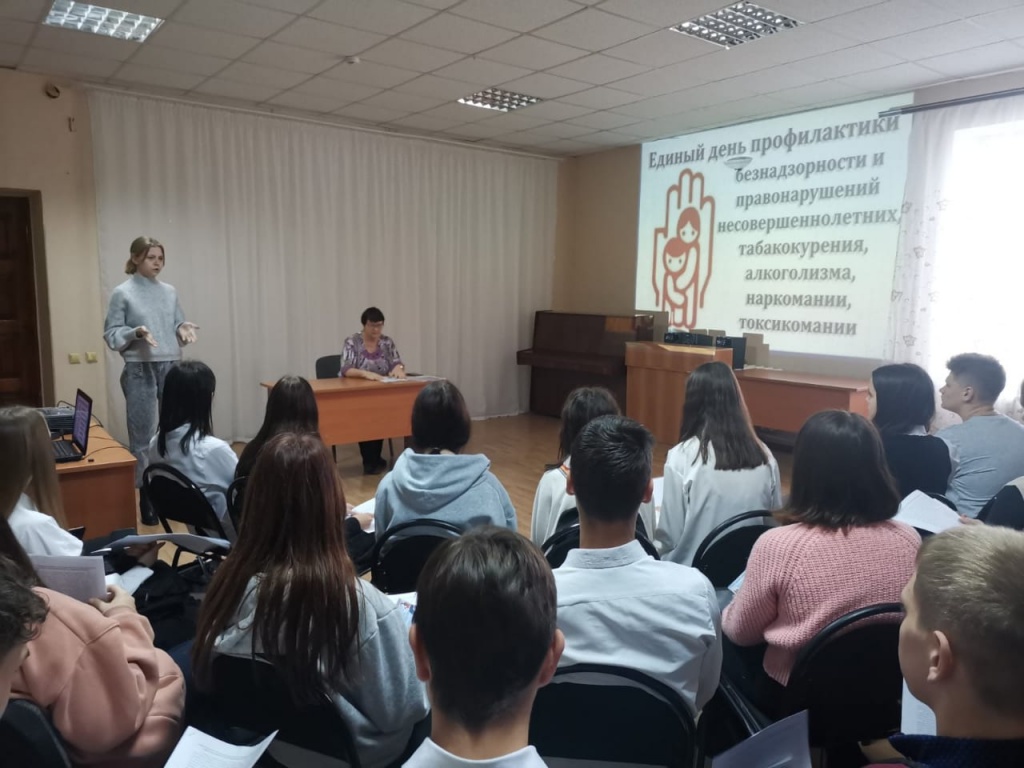 Представителями комиссии по делам несовершеннолетних и защите их прав при администрации Духовницкого муниципального района Саратовской области, МУК «Районный Дом культуры», МУК «МЦБ УКиК администрации Духовницкого муниципального района Саратовской области», 21.10.2022 года, в рамках реализации акций «Единый день профилактики безнадзорности и правонарушений несовершеннолетних» и «Сообщи, где торгуют смертью!», проведено мероприятие, в форме «круглый стол», на тему «Досуг творческий и культурный», с обучающимися 10 класса МОУ «СОШ им. Г.И. Марчука р.п. Духовницкое»/21 человек/, (классный руководитель Канунникова И.А.)