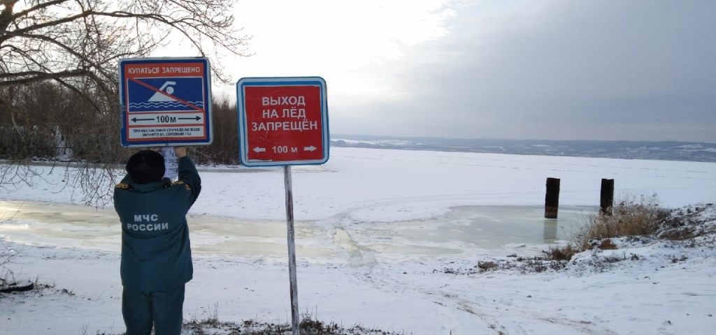 В ходе межведомственного рейда было проверено состояние знаков, запрещающих выход на лёд.