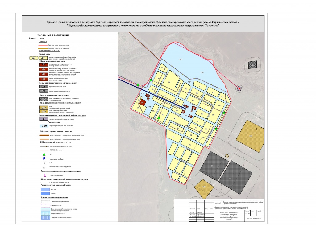 Карта градостроительного зонирования с нанесением зон с особыми условиями использования территории с. Теликовка