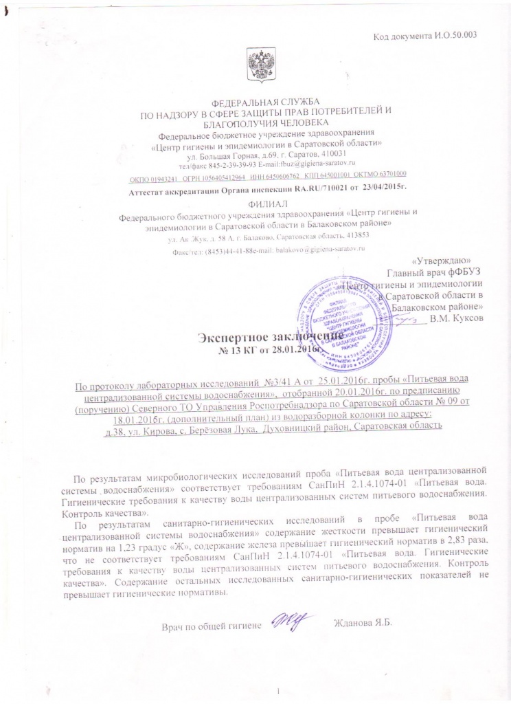Экспертное заключение от 28.01.2016 № 13 КГ