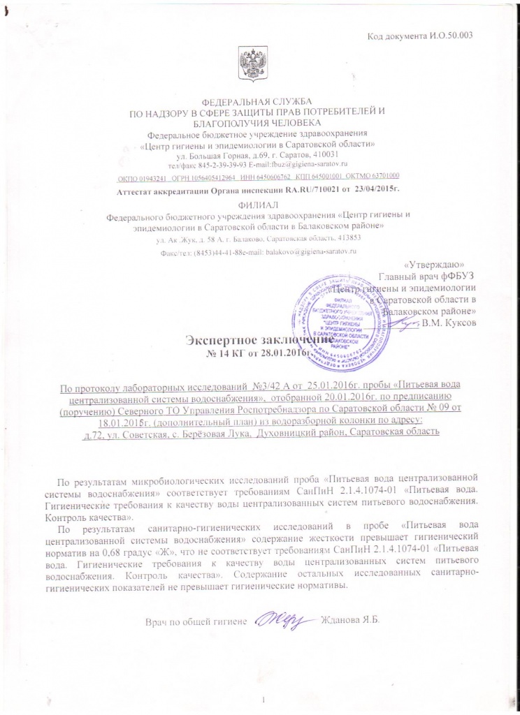 Экспертное заключение от 28.01.2016 № 14 КГ