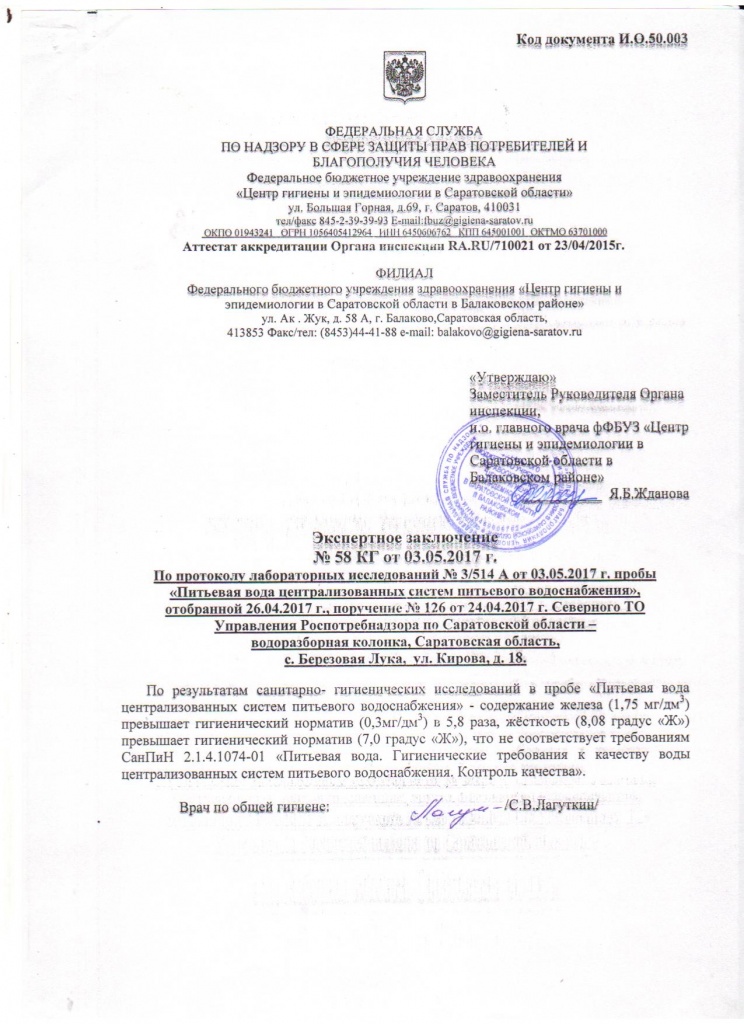 Экспертное заключение от 03.05.2017 № 58 КГ