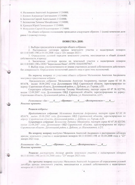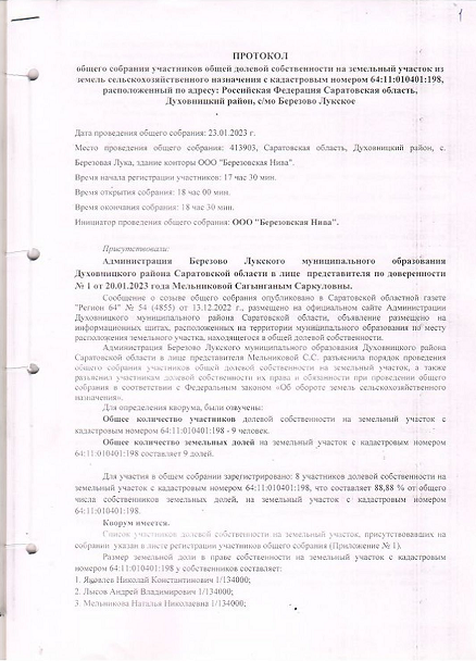 ПРОТОКОЛ общего собрания. Зем. участок 64:11:010401:198