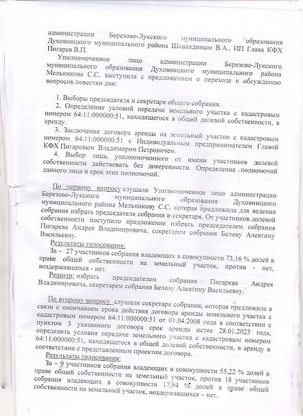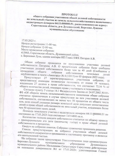 Протокол общего собрания. Зем.участок 64:11:000000:51