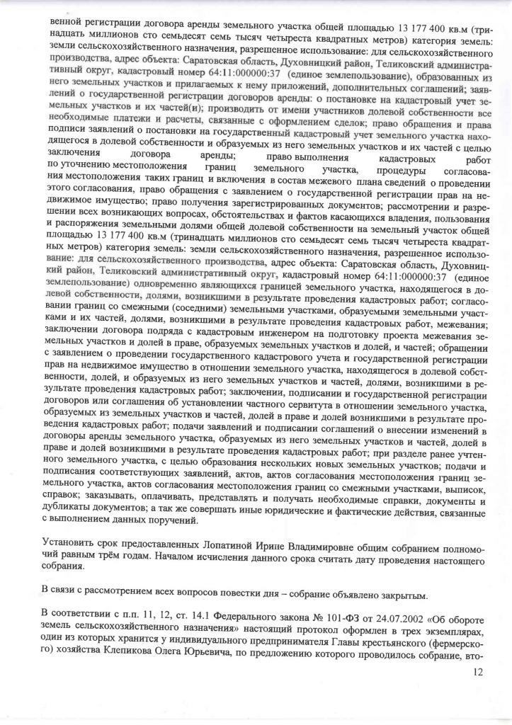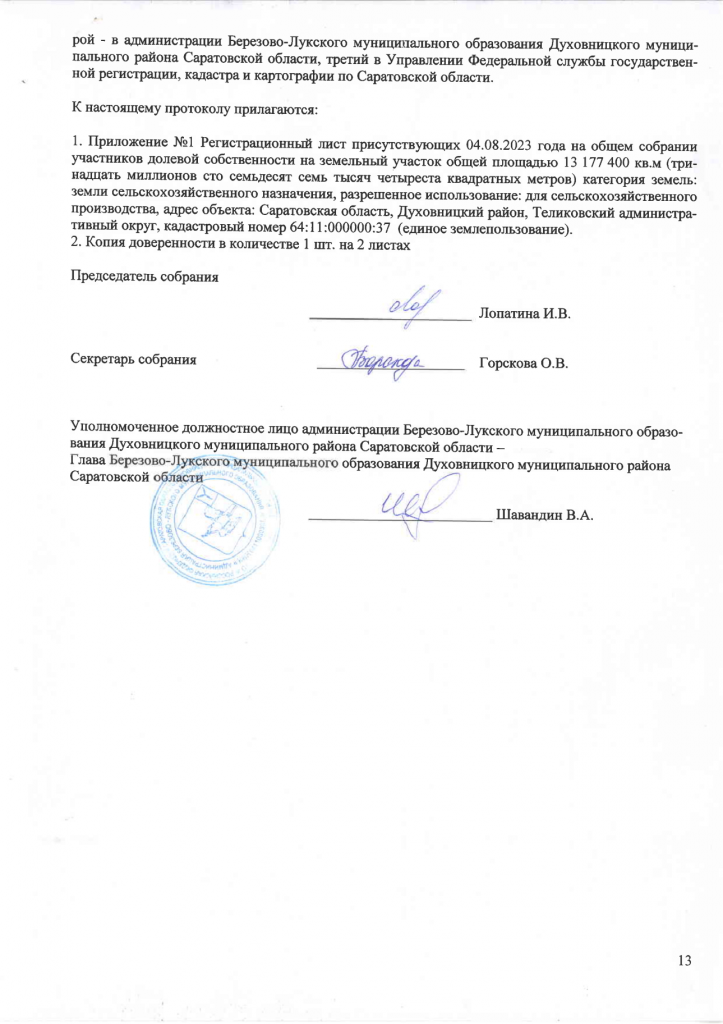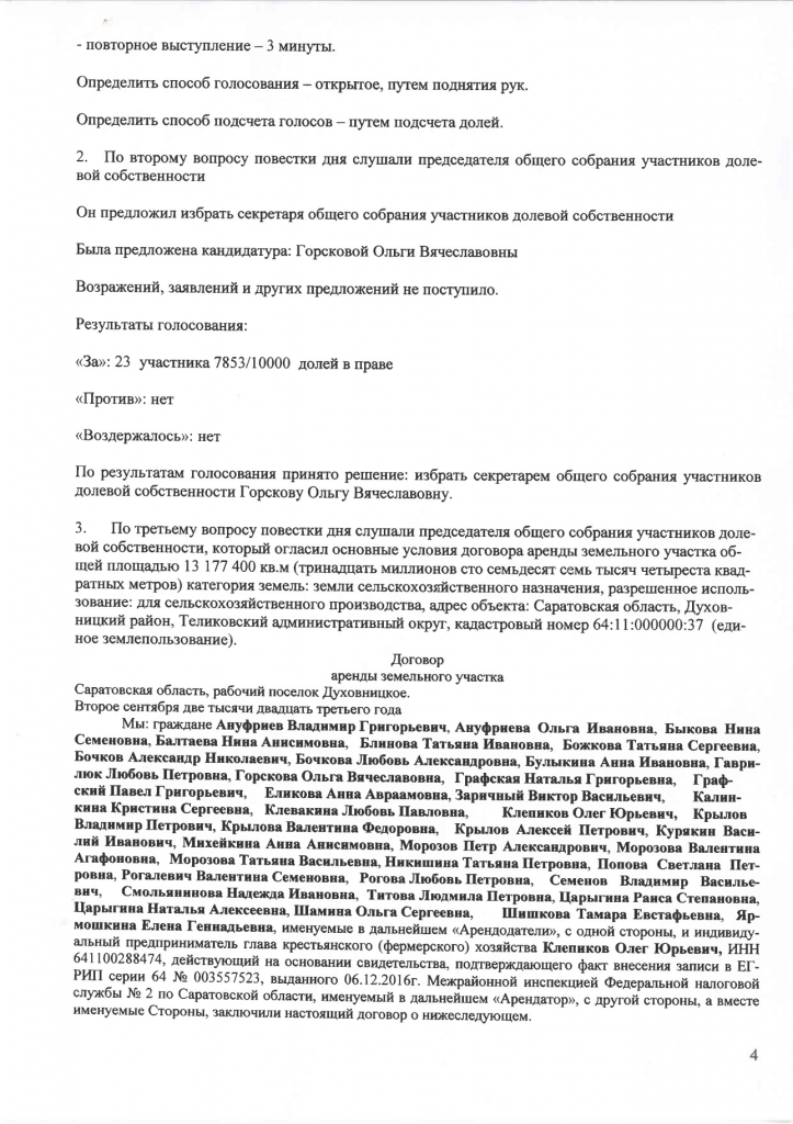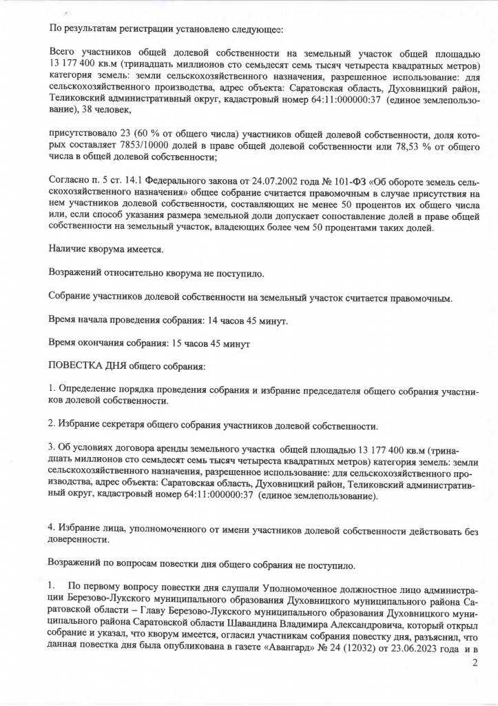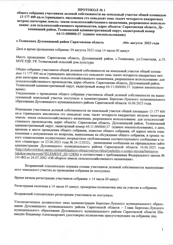 ПРОТОКОЛ общего собрания участников общей долевой собственности на земучасток общей площадью 13177400 кв.м. от 04.08.23