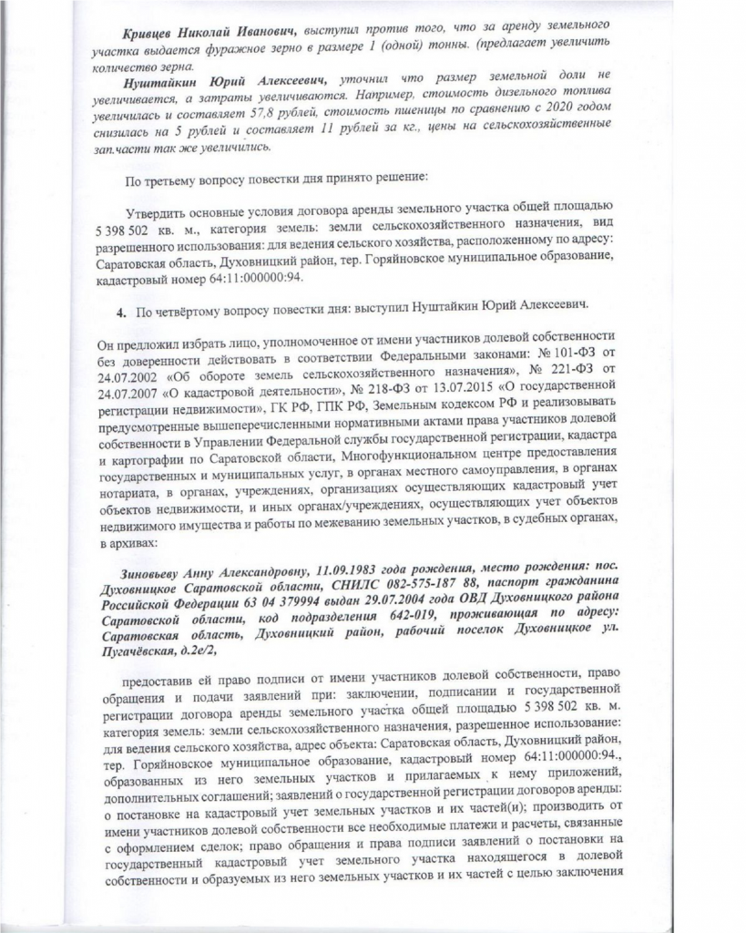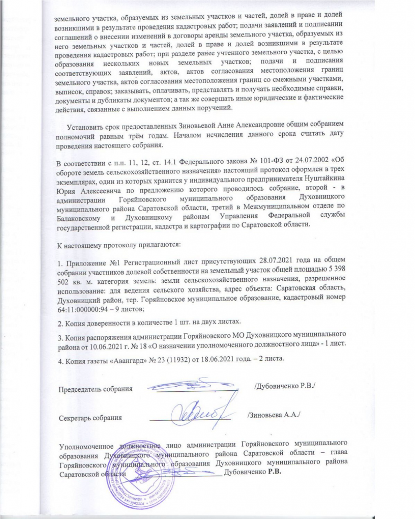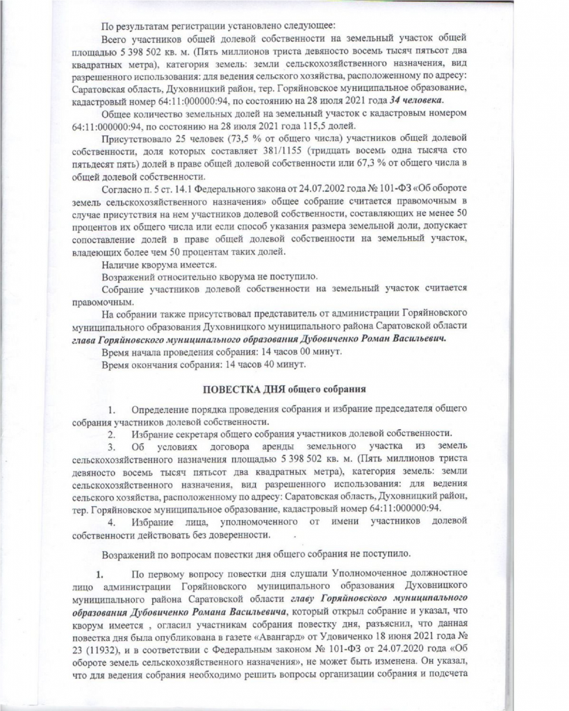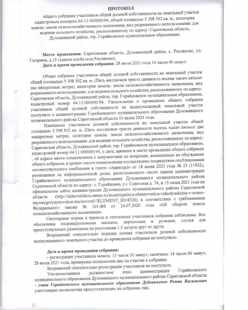 ПРОТОКОЛ общего собрания участников общей долевой собственности на земучасток общей площадью 5398502 кв.м. от 28.07.2021