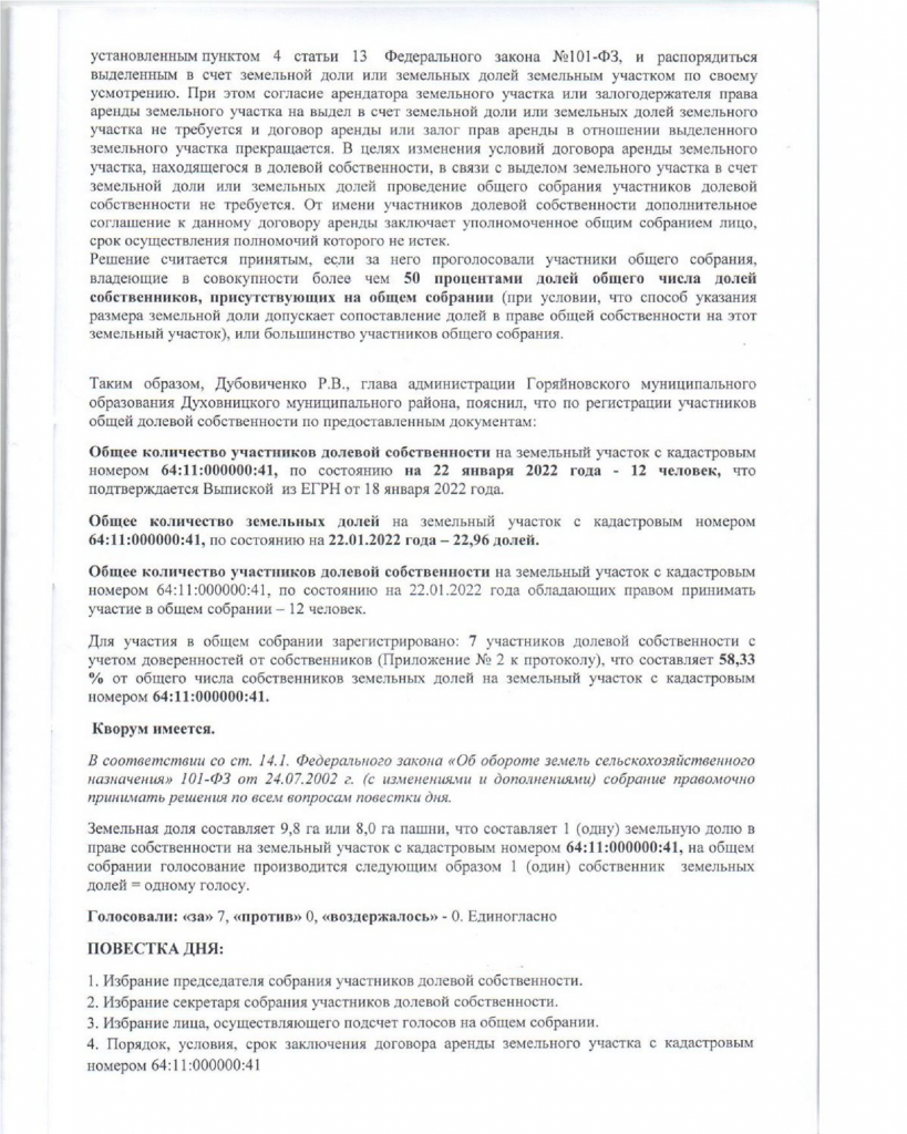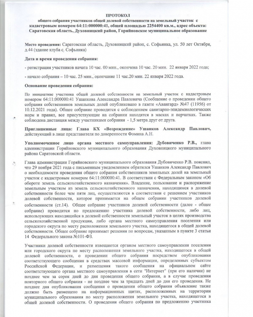 протокол общего собрания участников общей долевой собственности от 22.01.2022