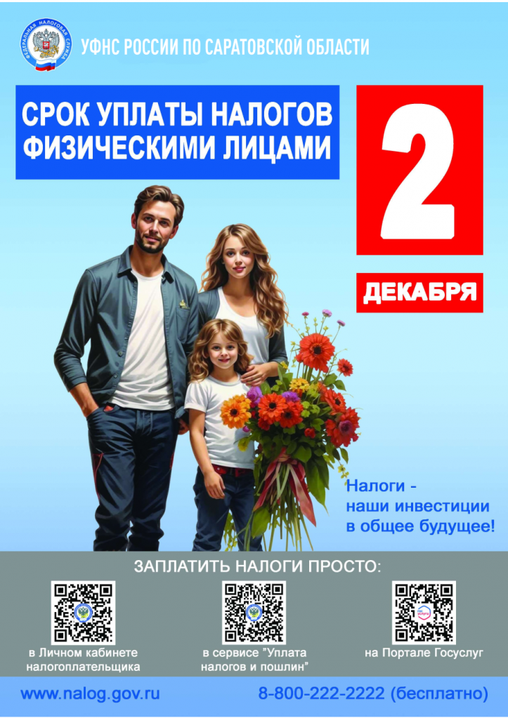 О сроке уплаты транспортного, земельного налогов и налога на имущество физических лиц за 2015 год.