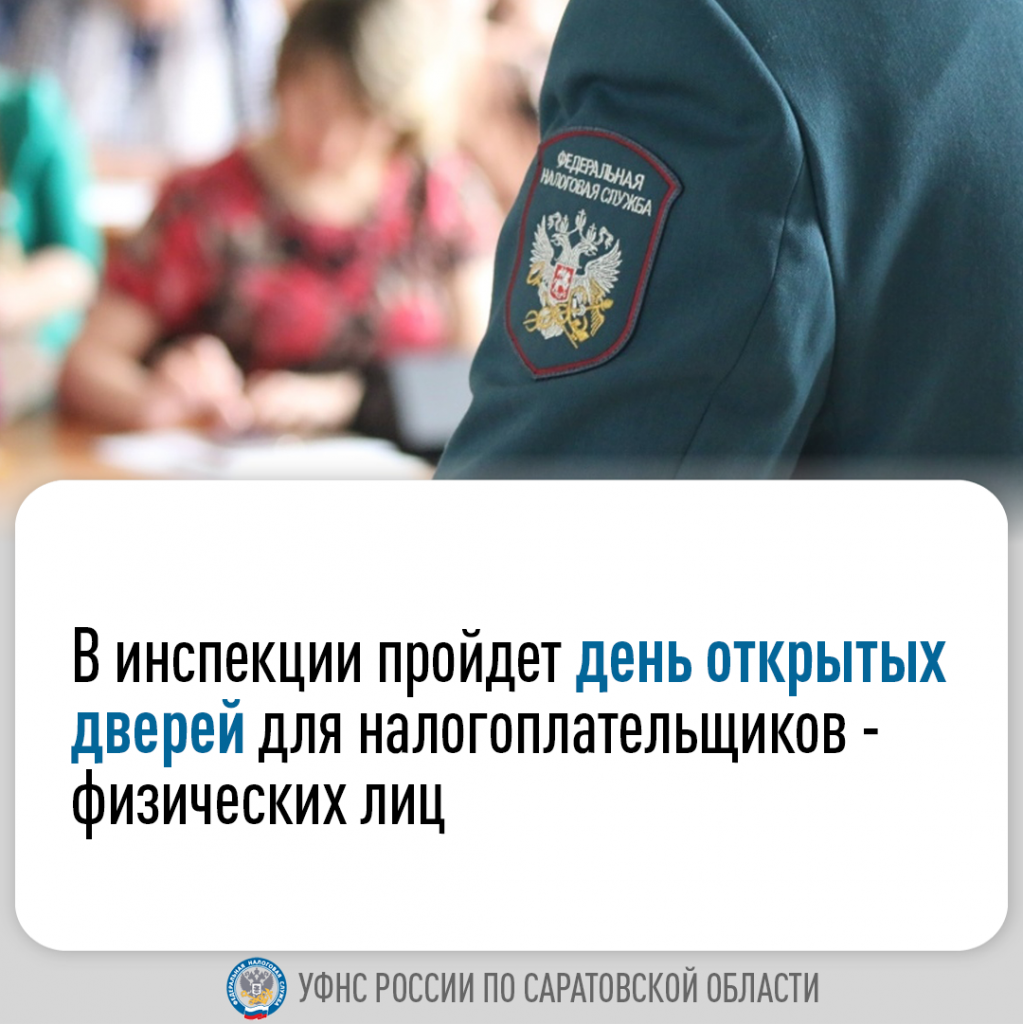 Межрайонная ИФНС России № 2 по Саратовской области сообщает о том, что 24 октября 2024 года с 9:00 до 20:00 для налогоплательщиков пройдет день открытых дверей по теме: «Уплата имущественных налогов физических лиц» по адресу: г. Балаково, ул. Степная, д. 2.