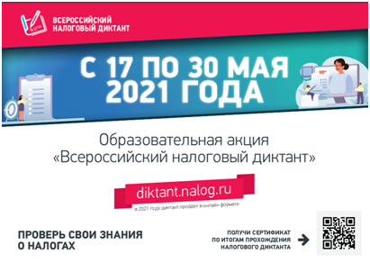С 17 по 30 мая 2021г в России стартует масштабная образовательная акция – «Всероссийский налоговый диктант».