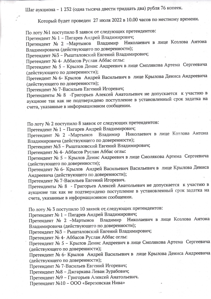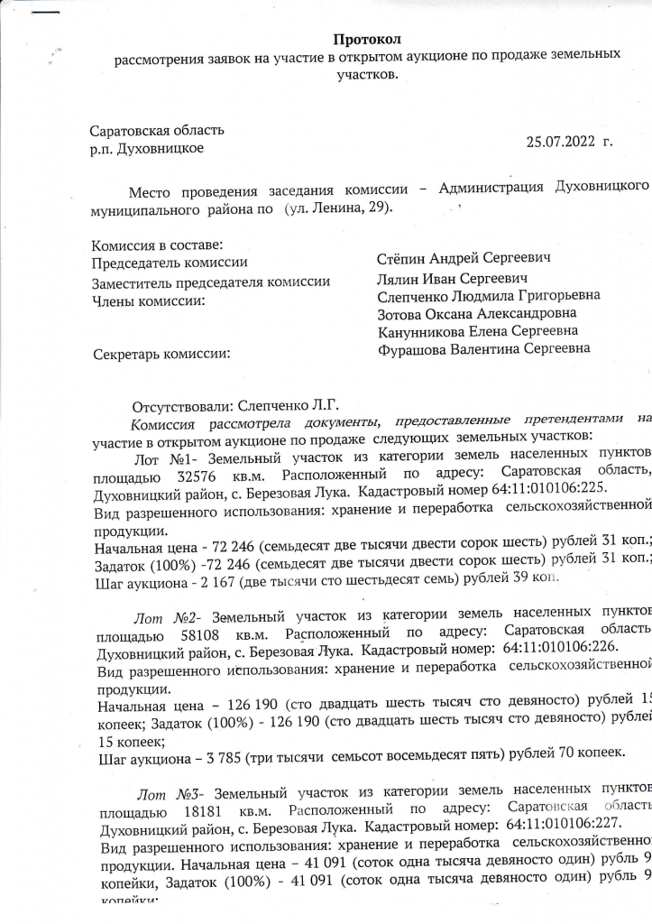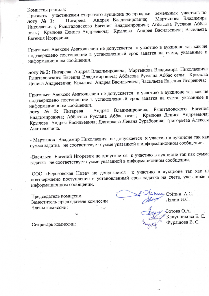 Протокол рассмотрения заявок на участие в открытом аукционе по продаже земельных участков