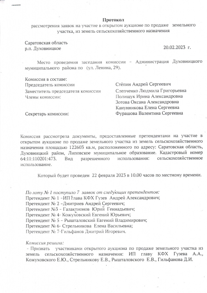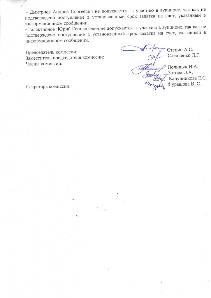 Протокол рассмотрения заявок на участие в oткрытом аукционе по продаже земельного участка, из земель сельскохозяйственного назначения
