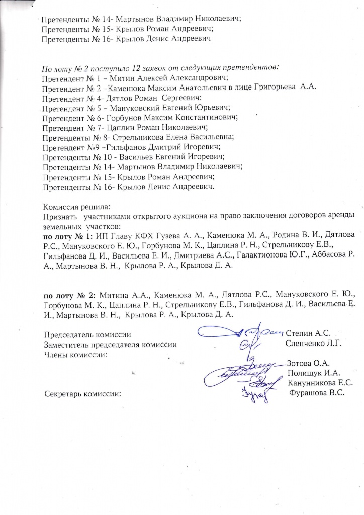 Протокол рассмотрения заявок на участие в открытом аукционе на право заключения договоров аренды земельных участков.