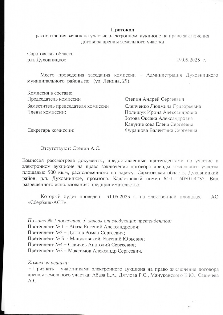 Протокол рассмотрения заявок на участие в электронном аукционе на право заключения договора аренды земельного участка