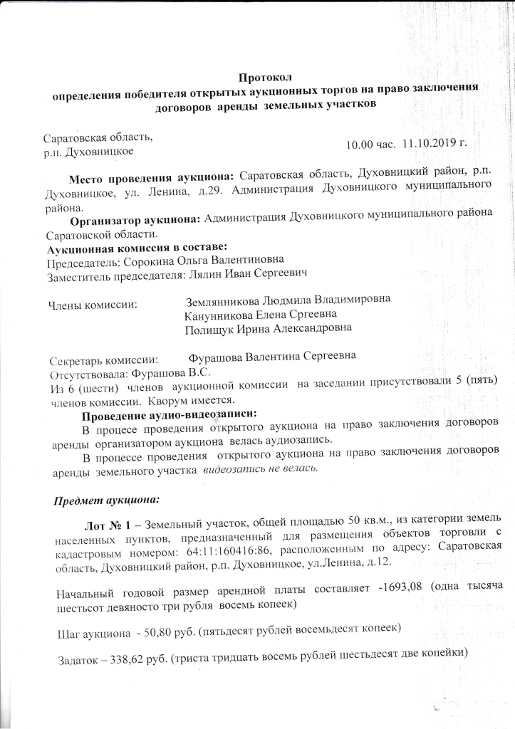Протокол определения победителя от 11.10.2019