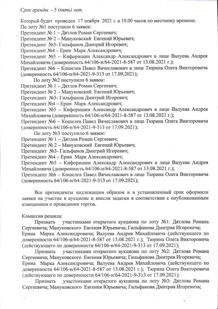 Протокол рассмотрения заявок на участие в открытом аукционе, на право заключения договоров аренды земельных участков