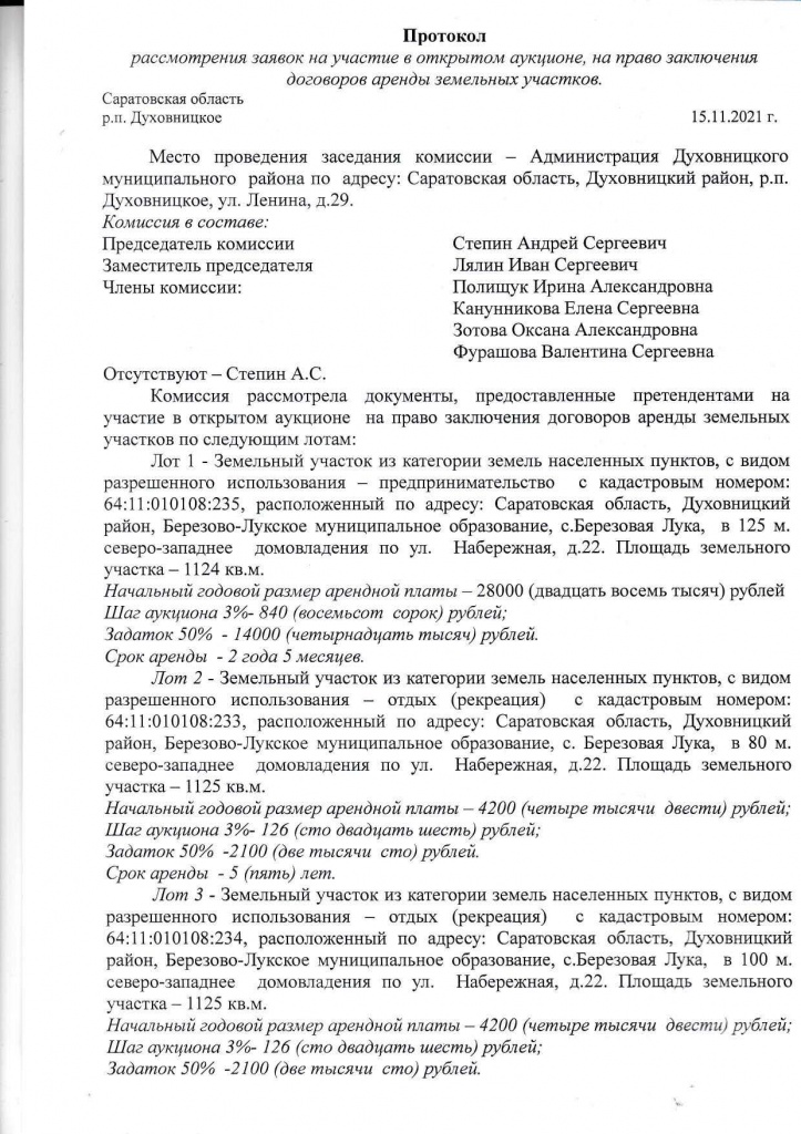 Организатор торгов: Администрация Духовницкого муниципального района Саратовской области;