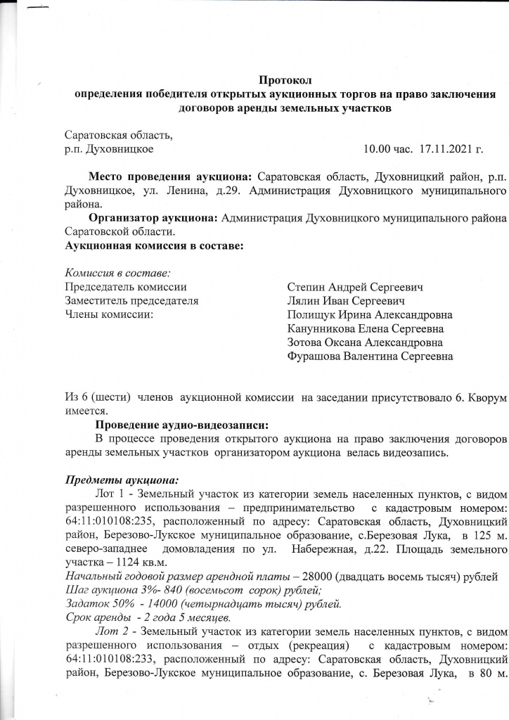 Организатор торгов: Администрация Духовницкого муниципального района Саратовской области;