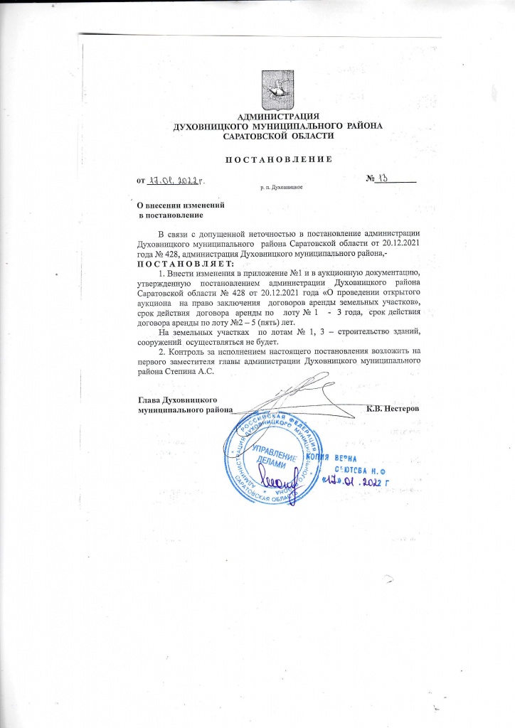 Постановление администрации от 17.01.2022 №13 "О внесении изменений в постановление от 20.12.2021 №428"