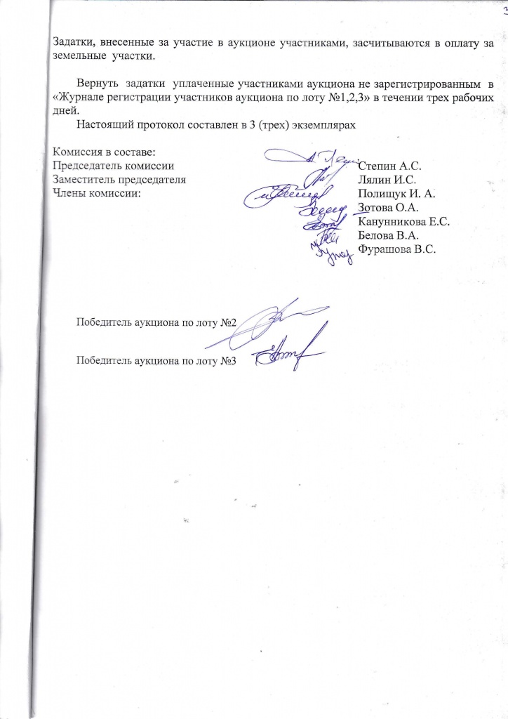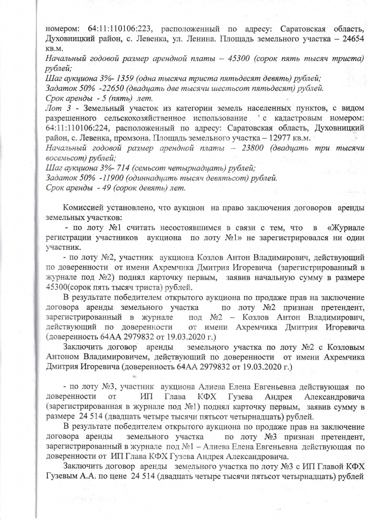 Протокол определения победителя открытых аукционных торгов на право заключения договоров аренды земельных участков