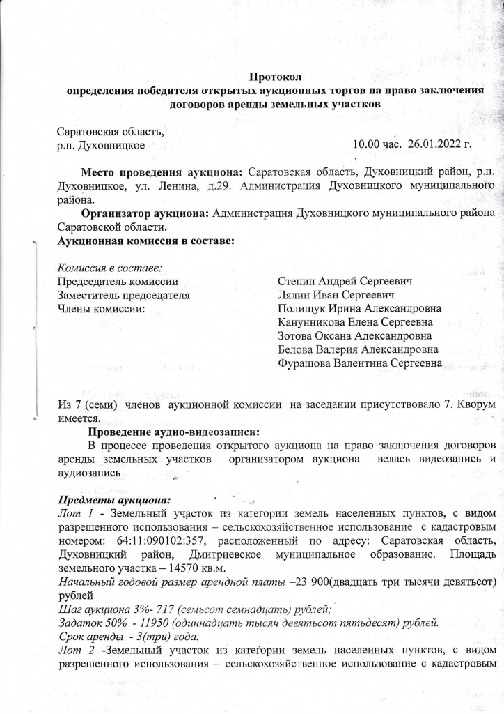 Организатор торгов: Администрация Духовницкого муниципального района Саратовской области;