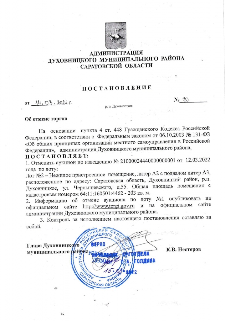 Организатор торгов: Администрация Духовницкого муниципального района Саратовской области;