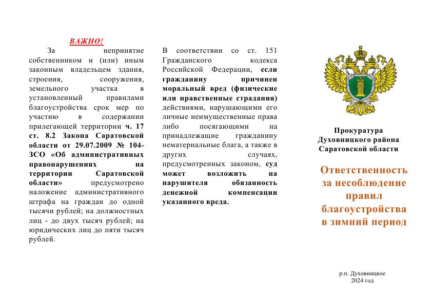 В преддверии наступления зимнего периода и в целях профилактики правонарушений в сфере обеспечения безопасности дорожного движения предлагаем ознакомиться с буклетом «Ответственность за несоблюдение правил благоустройства в зимний период».