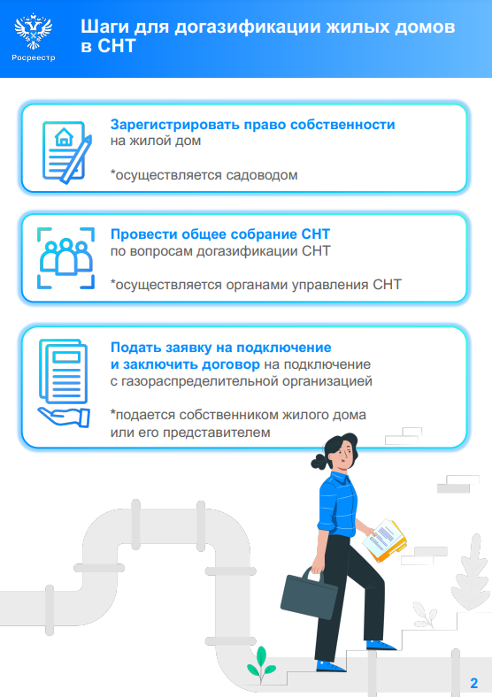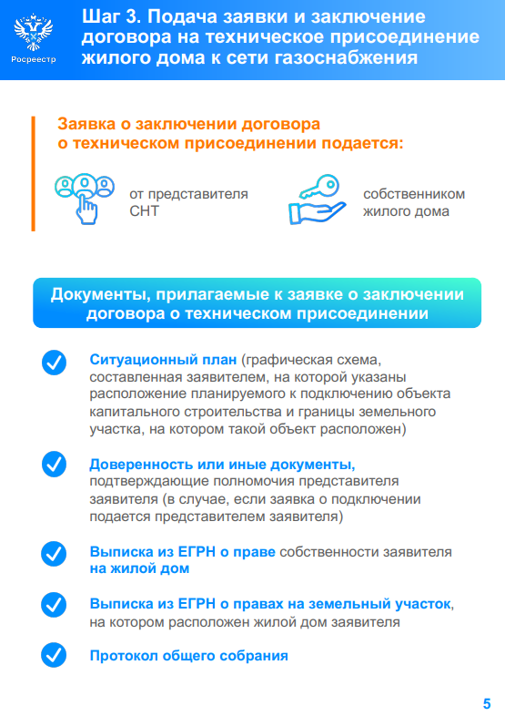 Специально для собственников земельных участков в СНТ, Росреестр разработал памятку, которая просто и доступно объясняет все особенности программы социальной догазификации. Кроме того, на сайте Росреестра https://clck.ru/3CrAJ4 размещены ответы на наиболее частые вопросы садоводов, связанные с реализации этой программы.