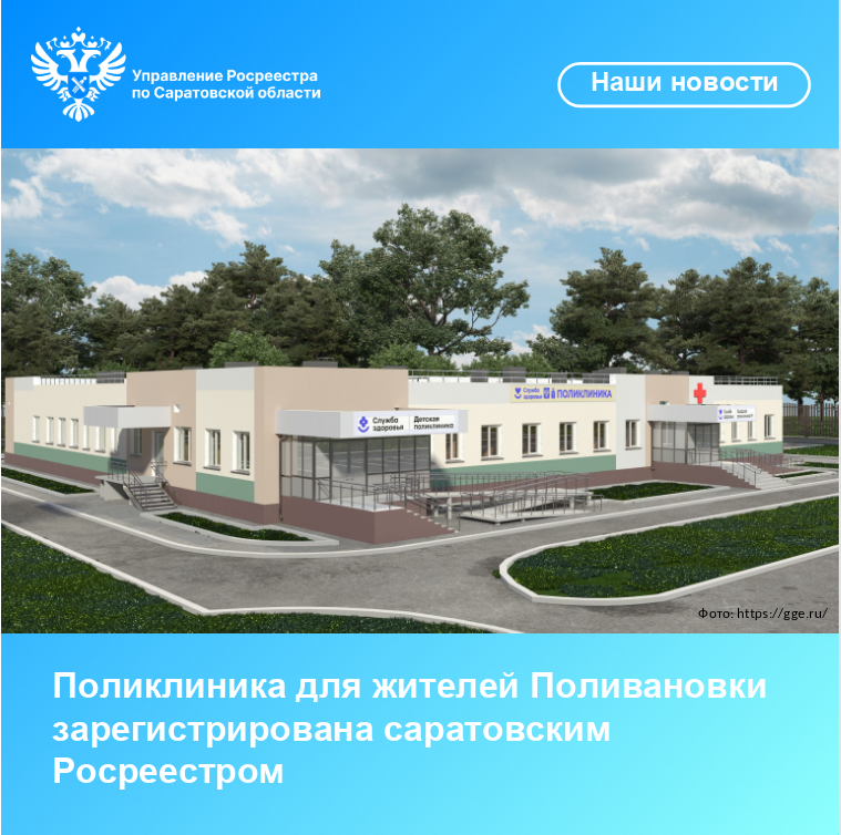 На днях сотрудники саратовского Росреестра осуществили учётно-регистрационные действия в отношении ещё одного медицинского учреждения. Речь идёт о поликлинике в пос. Поливановка г. Саратова. За одну смену она сможет принимать 100 взрослых и 50 детей.