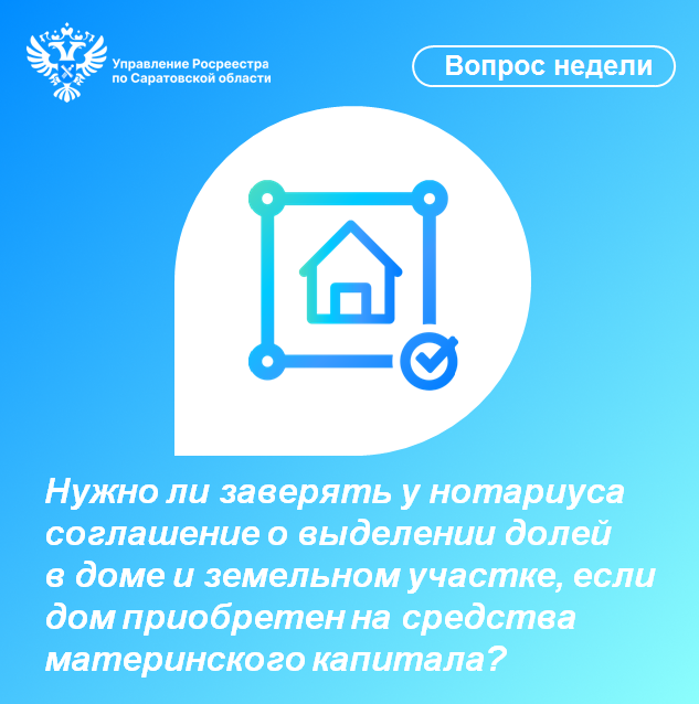 Вопрос недели: «Нужно ли заверять у нотариуса соглашение о выделе-нии долей в доме и земельном участке, если дом приобретен на средства материнского капитала?»