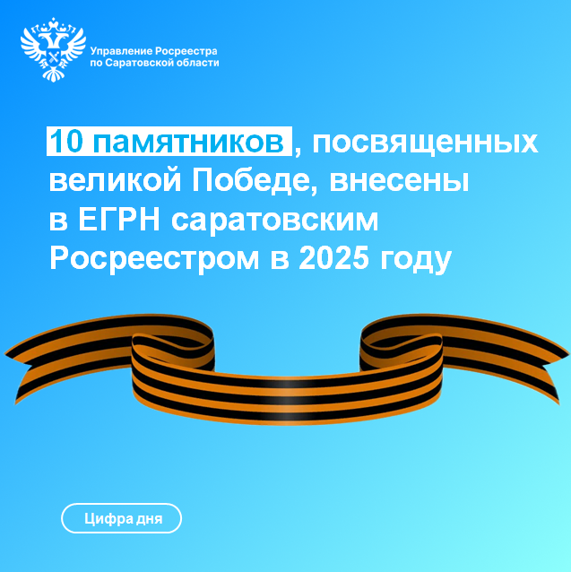 10 памятников и мемориалов, связанных с героическими страницами Великой Отечественной войны, внесены в ЕГРН саратовским Росреестром в 2025 году.