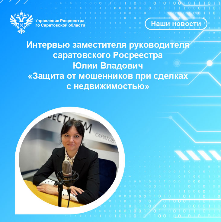 Интервью заместителя руководителя Управления Росреестра по Саратовской области Ю.А. Владович «Защита от мошенников при сделках с недвижимостью»