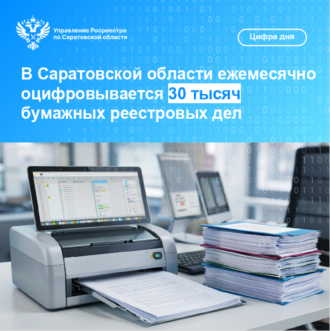 В Саратовской области ежемесячно оцифровывается 30 тысяч бумажных реестровых дел