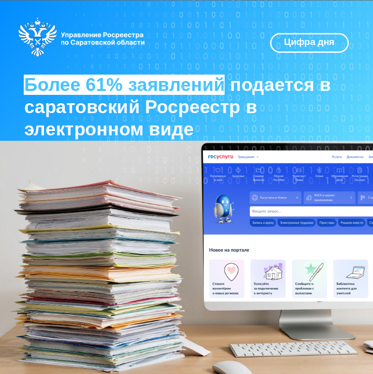 Более 61% заявлений подается в саратовский Росреестр в электронном виде